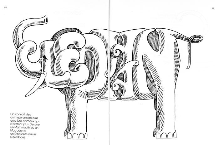 👨🎨 Le typographe, auteur et illustrateur français Jean Alessandrini (1942) et ses dessins à partir de lettres qui forment à la fois le mot et la représentation formelle de ce qu’il désigne.