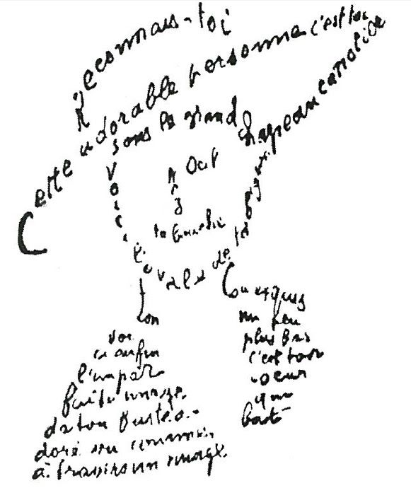 👨🎨 Le poète français Guillaume Apollinaire (1880-1918) et ses calligrammes : des poèmes mis en forme par l’écriture qui devient image.