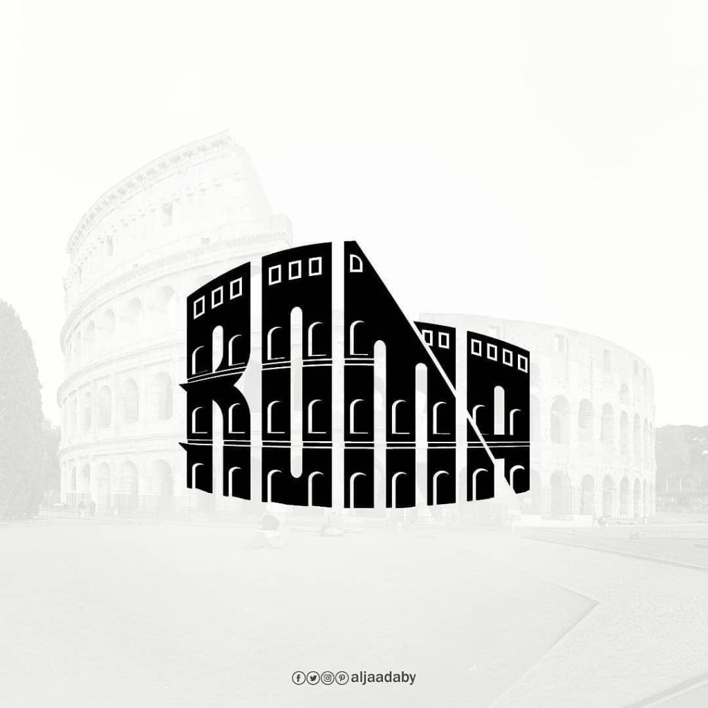 👨🎨 Le graphiste Aljaadaby et ses mise en forme de noms de ville ou de pays reprenant la forme des monuments iconiques de leur origine.