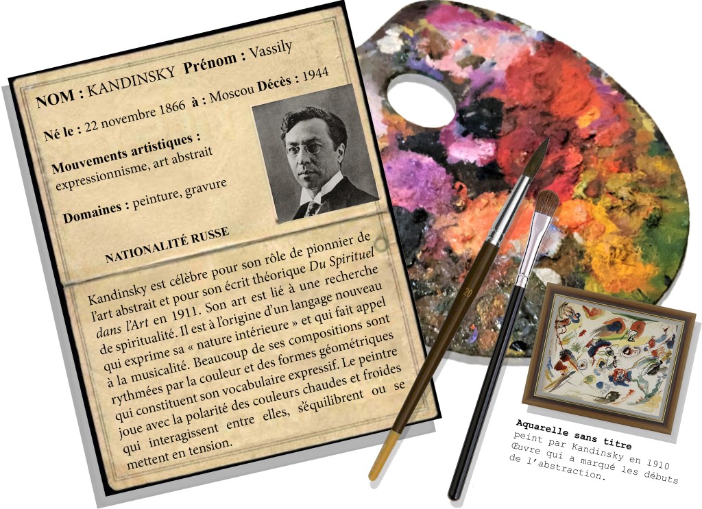 🔎 Kandinsky est atteint de synesthésie, il associait les sons à la couleur. Dès qu’il entendait une note ou une mélodie il lui associait une teinte.