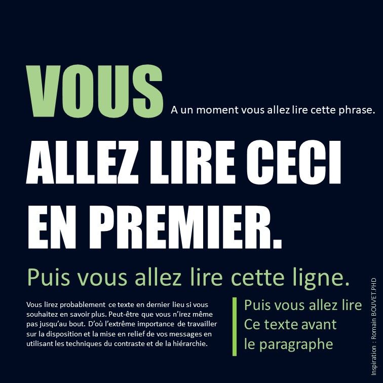 ↘️ Le sens peut venir de la taille des éléments, de leur placement et de leur couleur.
