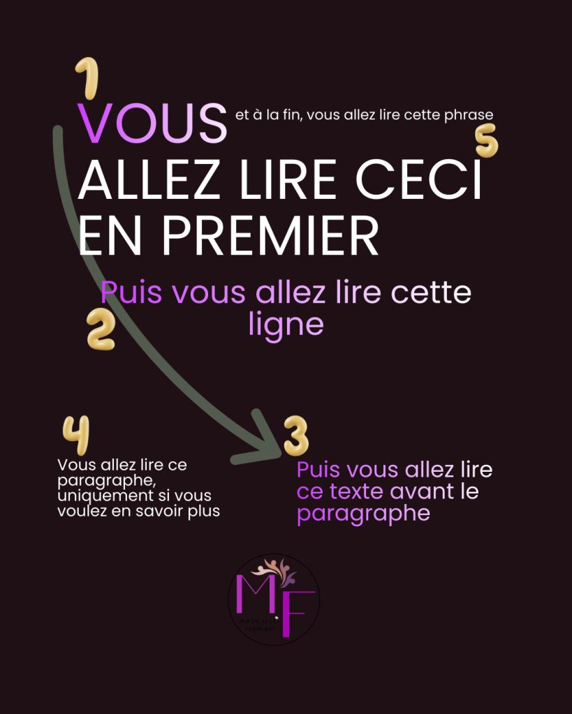 ⬇️ ➡️ Sens de lecture occidentale : Du haut vers le bas, de gauche à droite.
