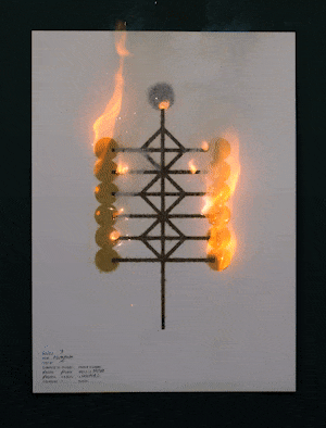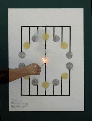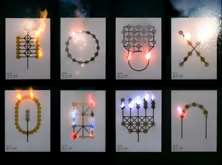Affiches Artifices, 2021, Papier, Poudres pyrotechniques, série de 12 posters, 50 x 70 cm.