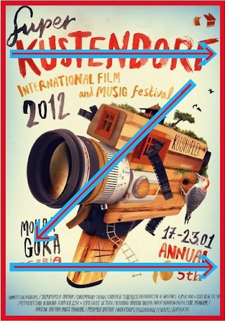 👀 Les graphistes composent leur affiche de manière à faire circuler notre regard. Les informations et les images sont positionnées pour nous faire suivre un sens de lecture.