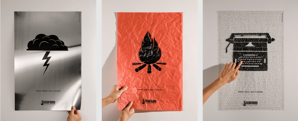 Saxsofunny Sound Production « Every Image Has a Sound », 2009, affiches interactives pour la Saxsofunny Sound Production Compagnie.