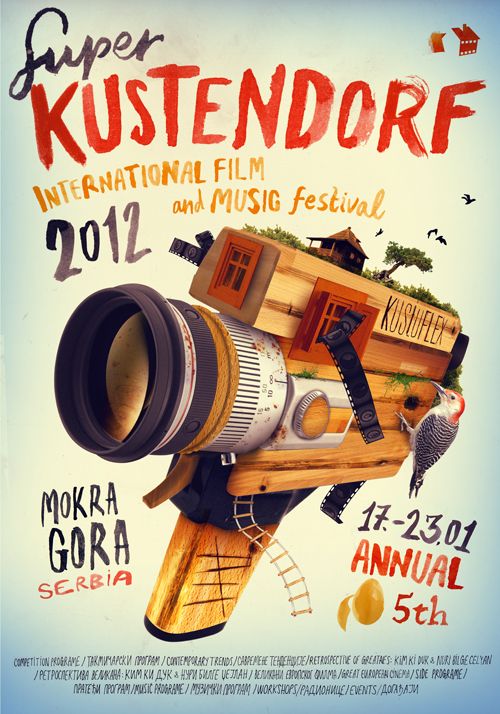 🔎 L’affiche du graphiste Ivan Klepac pour le Festival international de cinéma et de musique à Drvengrad en Serbie en 2012.