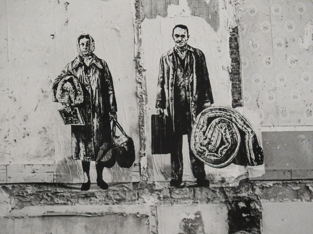 👨🎨 L’artiste français Ernest Pignon Ernest et son collage in-situ, « Les Expulsés » à Paris en 1978.
